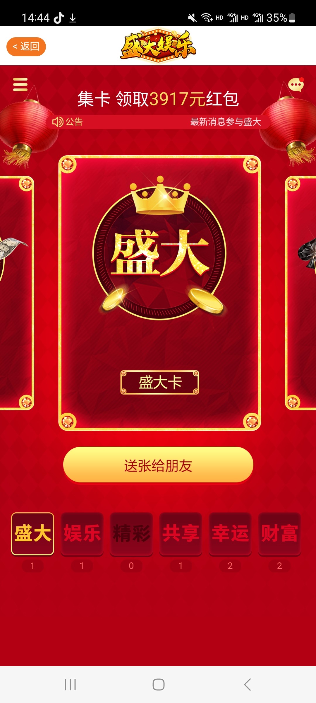 缺一张精彩可以用幸运和财富换
