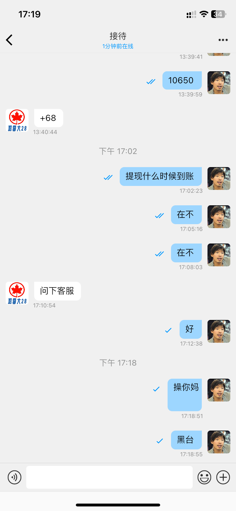 2隔天(24小时)后再找到客服。