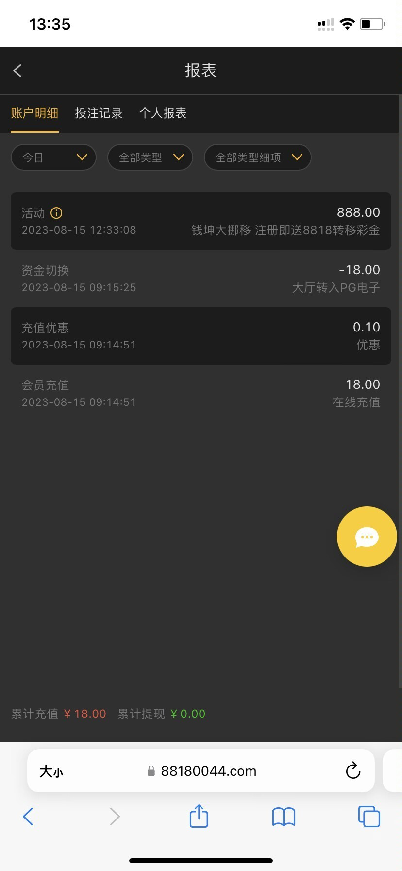 之前988钱包注册送18充值进去,