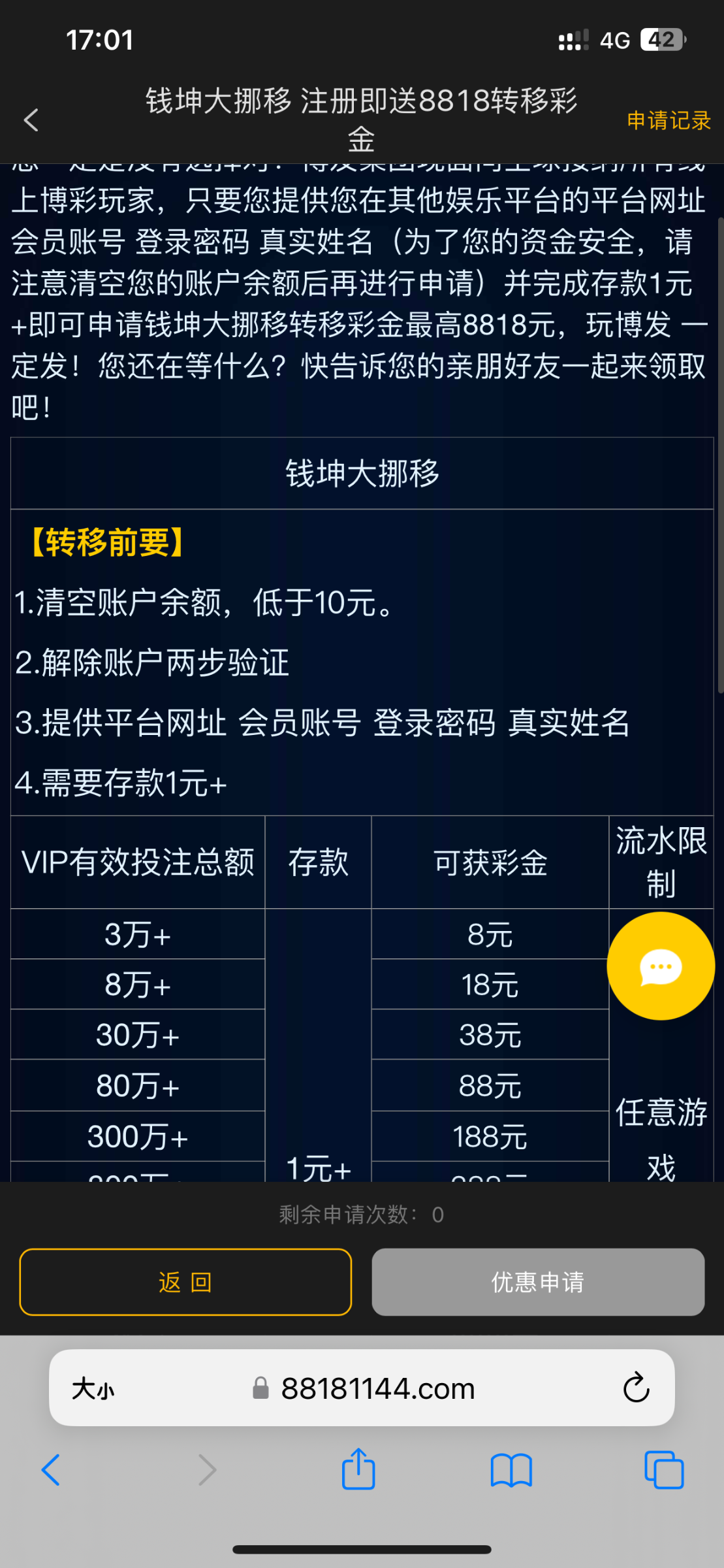 然后去领取活动优惠那里看转移的活动,有老哥撸到888