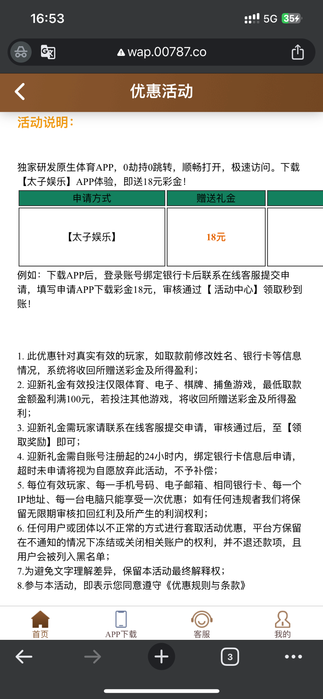 新用户注册绑卡下载app 联系在线客服申请18元彩金 送了以后需要手动领取一下 游戏和提款限制自行询问客服