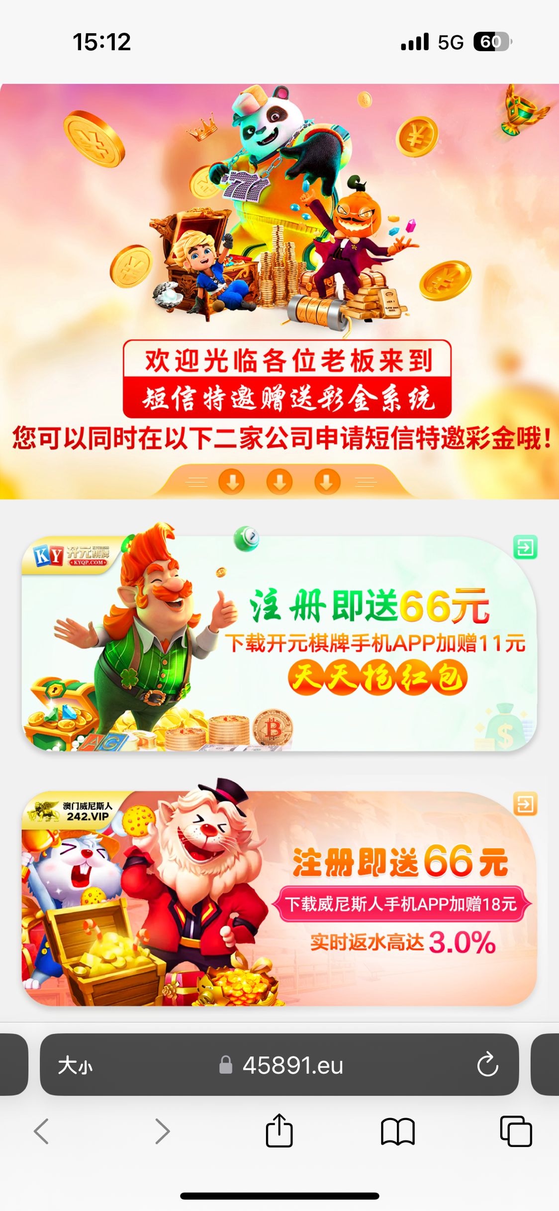分别是两个网址入口,都是送66。注册找客服拿图进行碰瓷