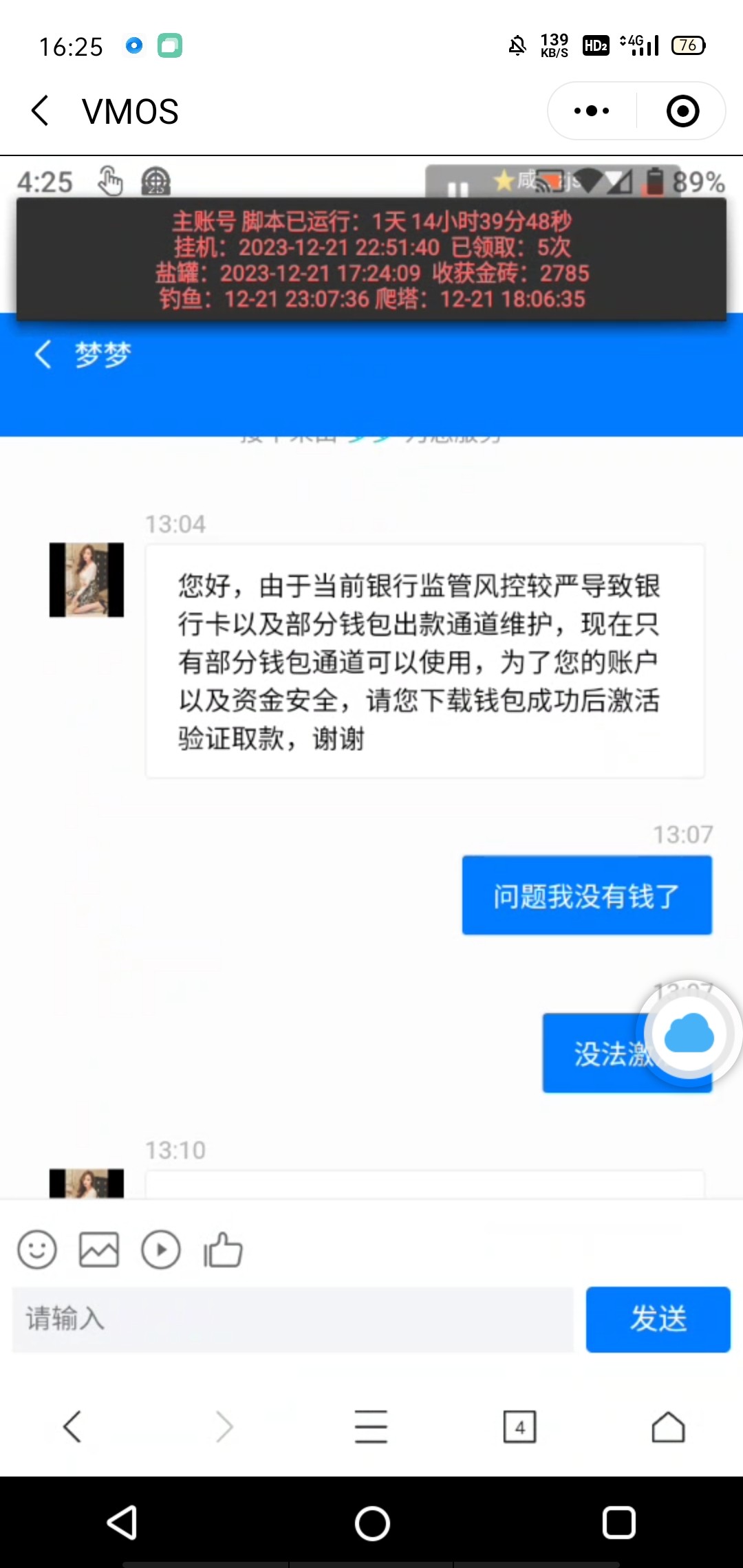 前后充了 2000,最后提款三千被拒,显示要激活钱包才能提现,大黑币了属于是