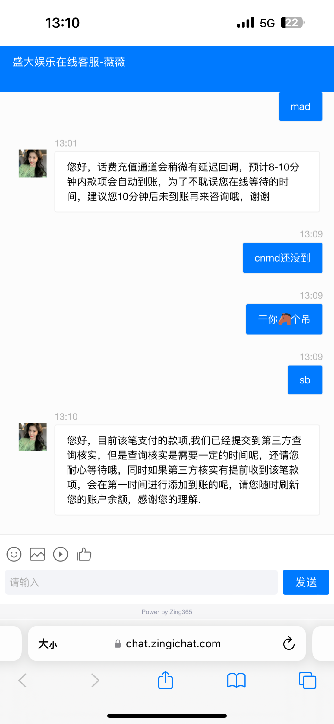被黑了三次了,前两次是买京东卡,微信电费,这一次是充话费,等了一个小时没到,真他妈恶心,听兄弟一次劝,别玩盛大,
