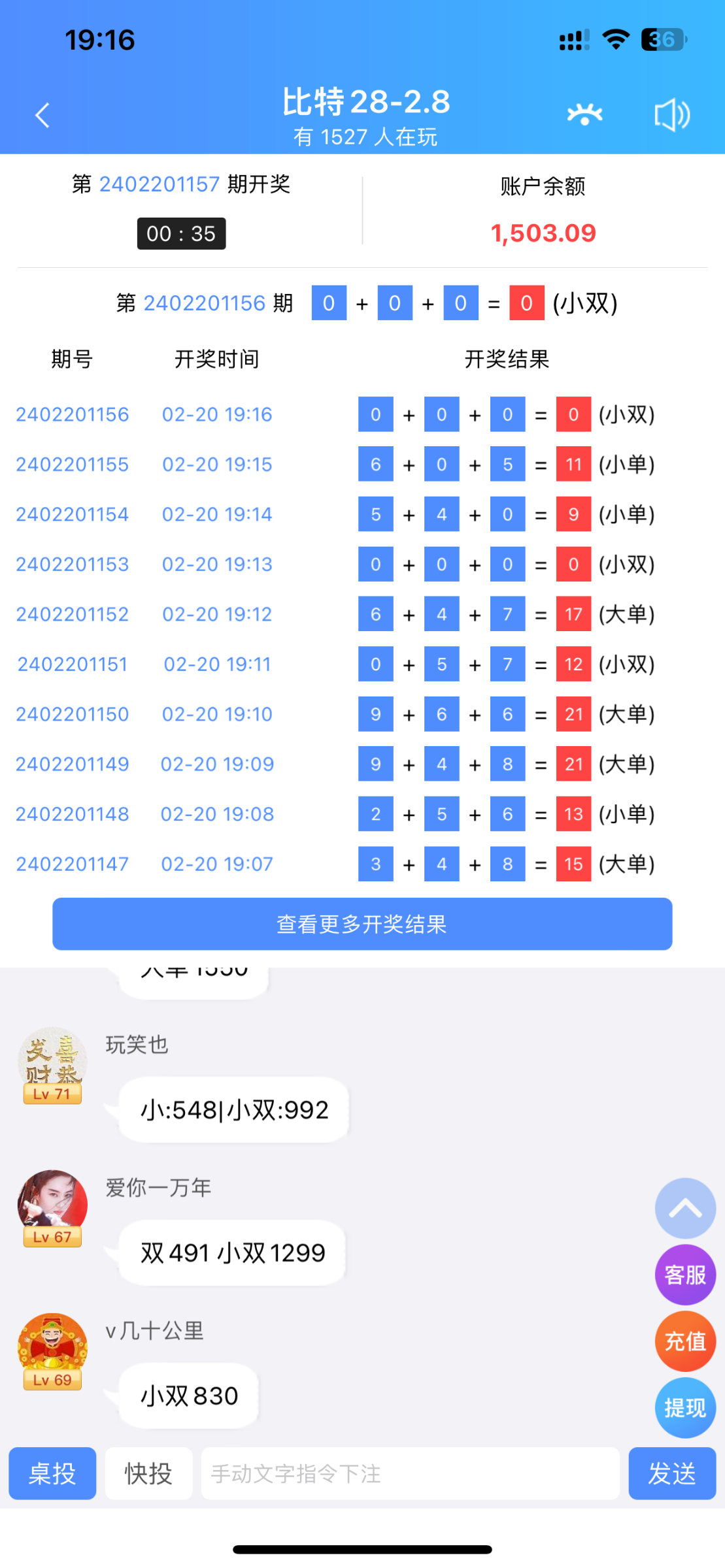 连着开俩00,没到70期又开一个27,没过一会又开俩27,可惜我一直在玩,没点00-27