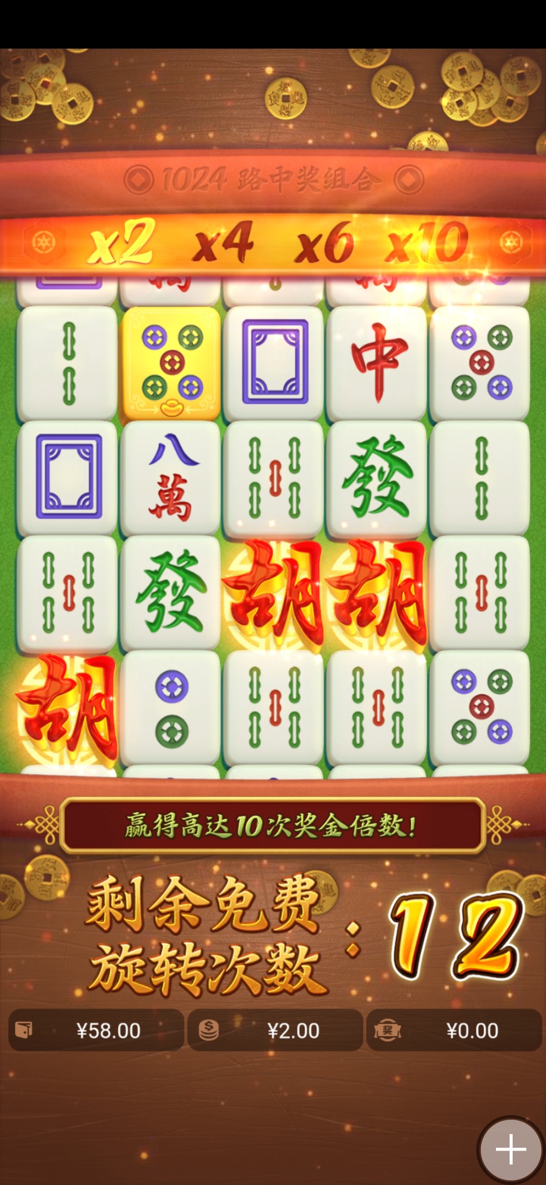 麻将一是坑比,还不如玩麻将二,麻将一我从来没中过20倍的。免中免中免,依旧是空转。