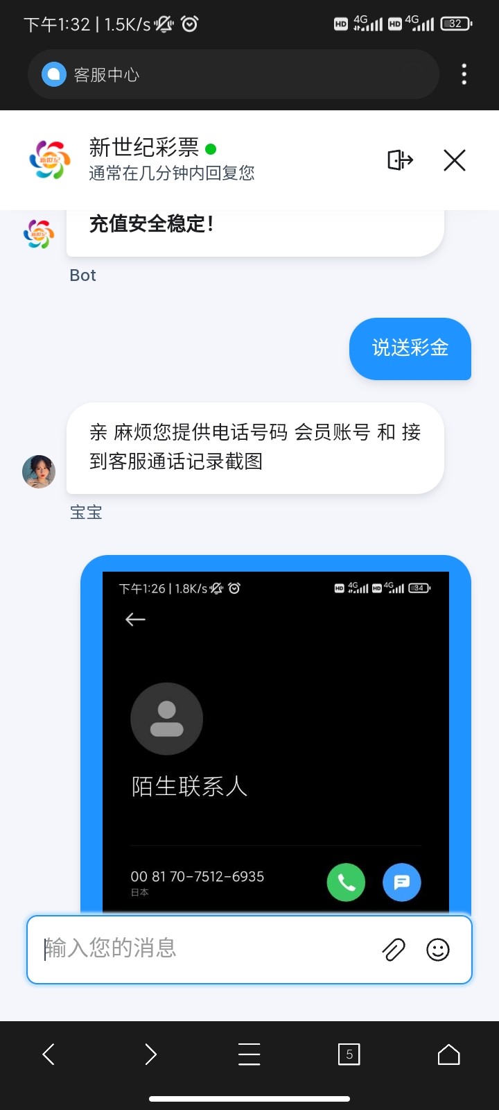 昨天老哥发了,注册了,老哥说发站内信申请,就没找客服,发完了昨天没到账,刚刚打电话来送彩金,找客服领了58