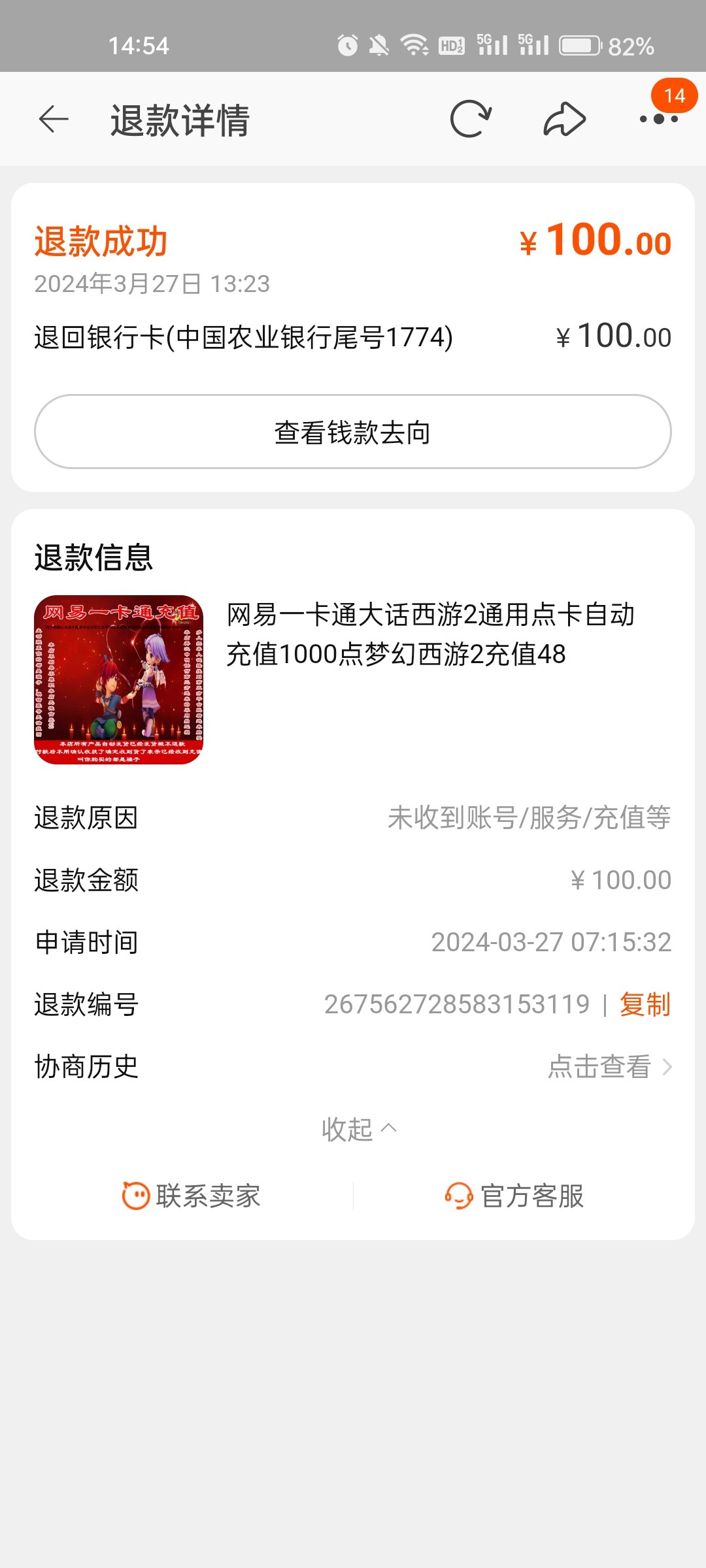 退款成功了