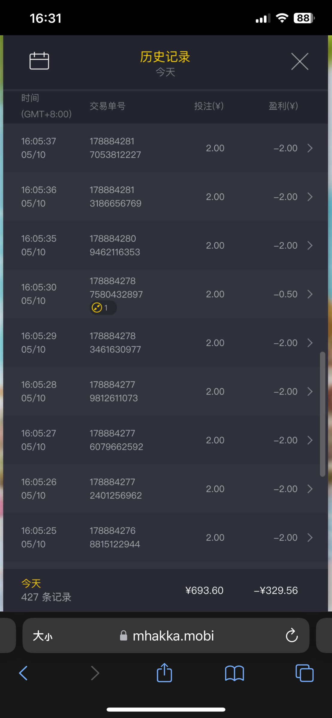 把你的账户是负盈利了。