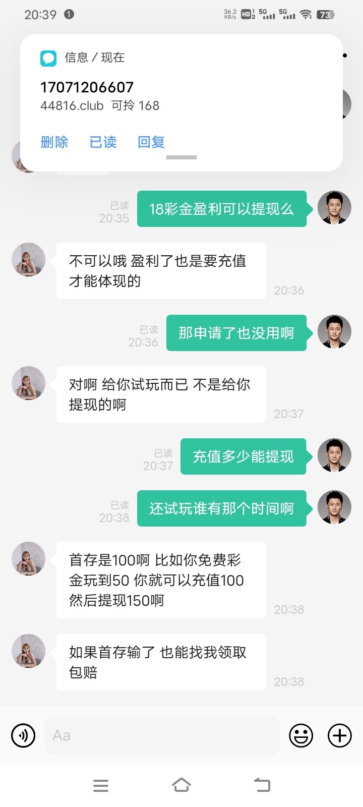 来短信说送18然后打100让充值,傻B玩意还不如不送浪费时间,现在台子就这逼样,没钱想白嫖比登天还难