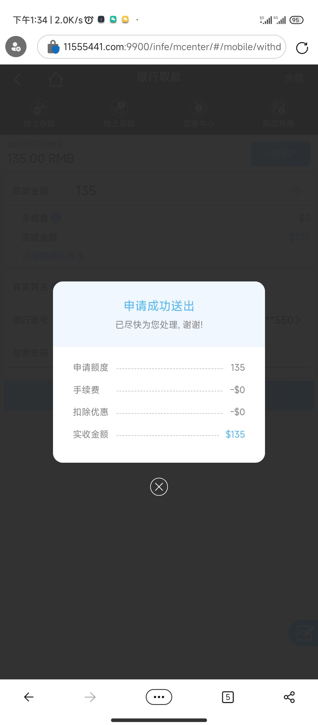 到账了