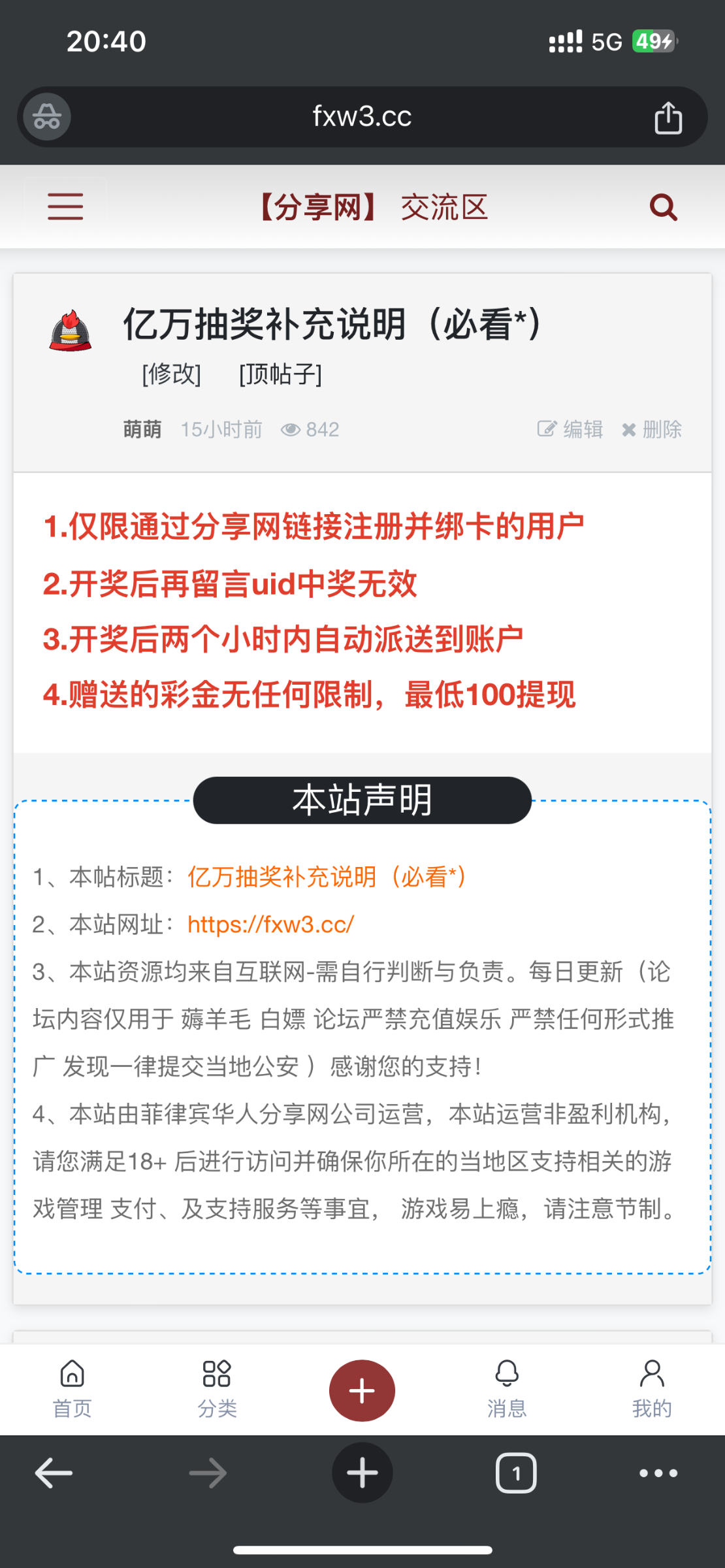 本站声明 1、本帖标题:亿万中奖名单