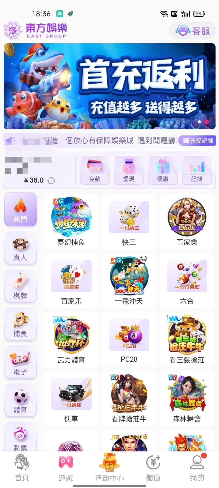 回访了送了38,提了150到账,没充过