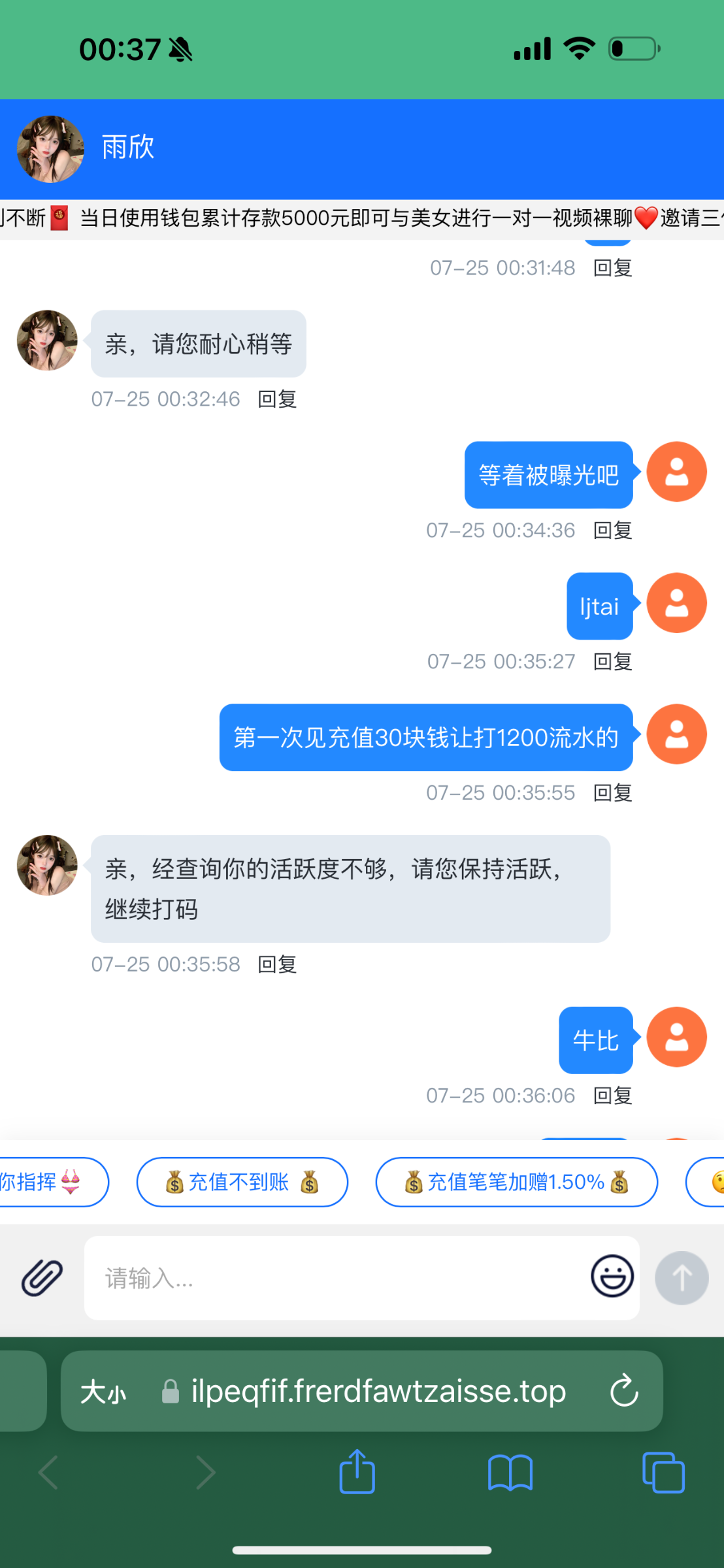 冲了30块钱 提100退回说不活跃 流水低 直接罚了400倍流水 1200 回去直接空转到死 666黑笔台第一次见充值没彩金还他妈罚水 谁玩谁倒霉