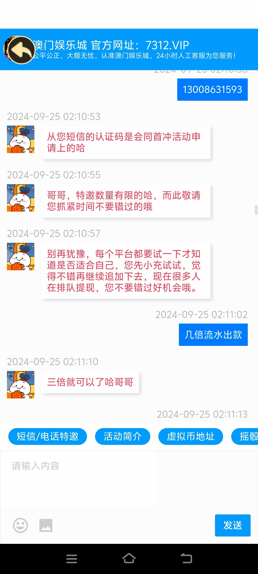 7312.vip这傻逼台老哥们注意了一百块钱都骗