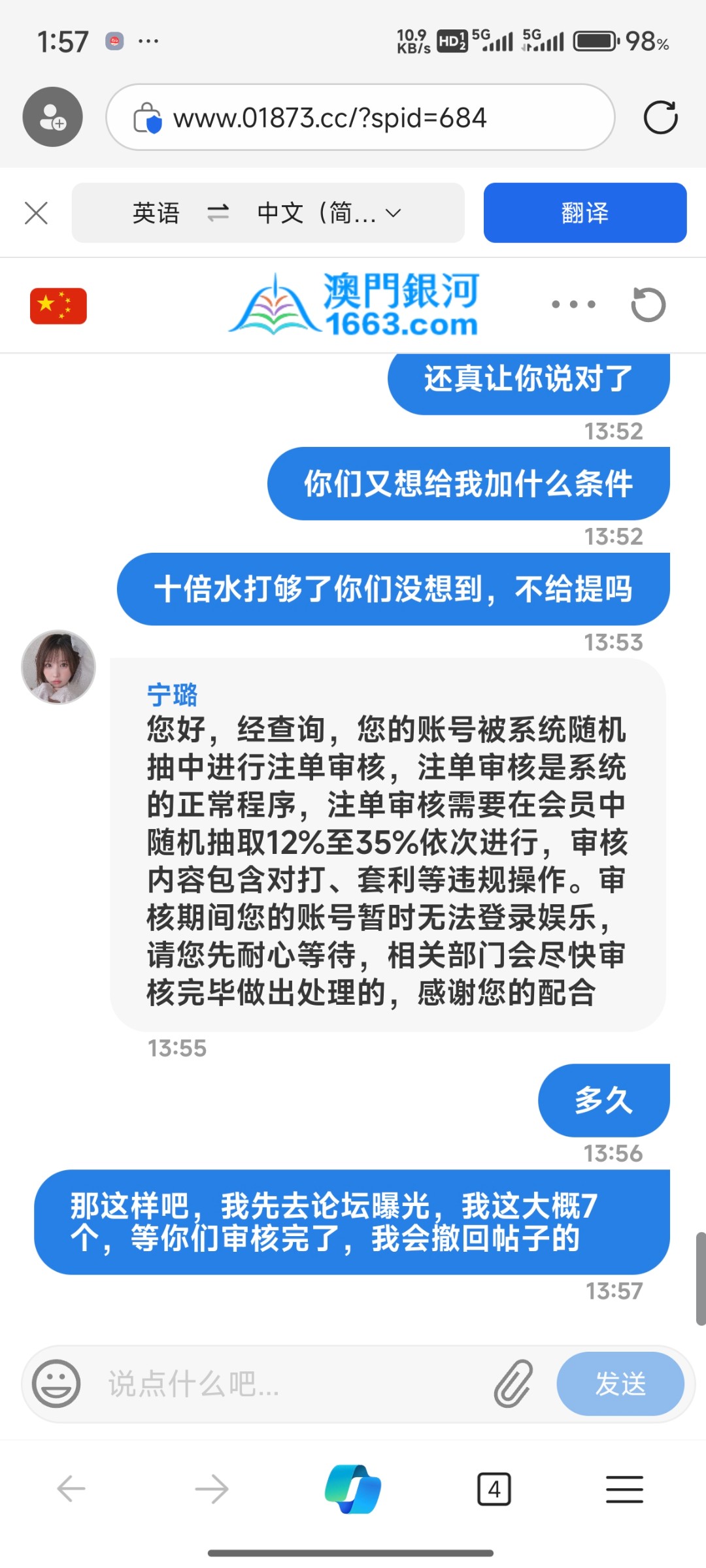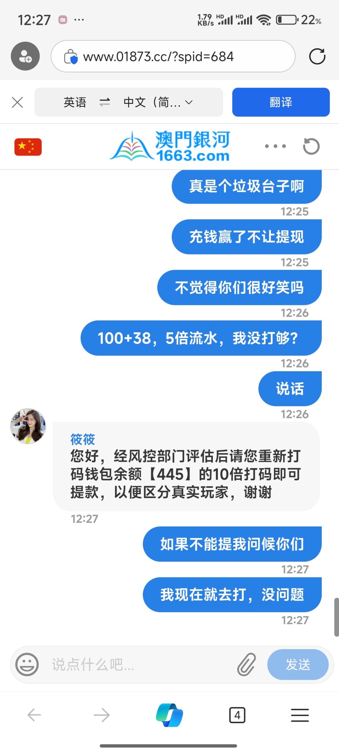 避雷黑台兄弟们,充值打到445罚了10倍水,打完十倍水注单审核,这台子千万别碰,稳黑