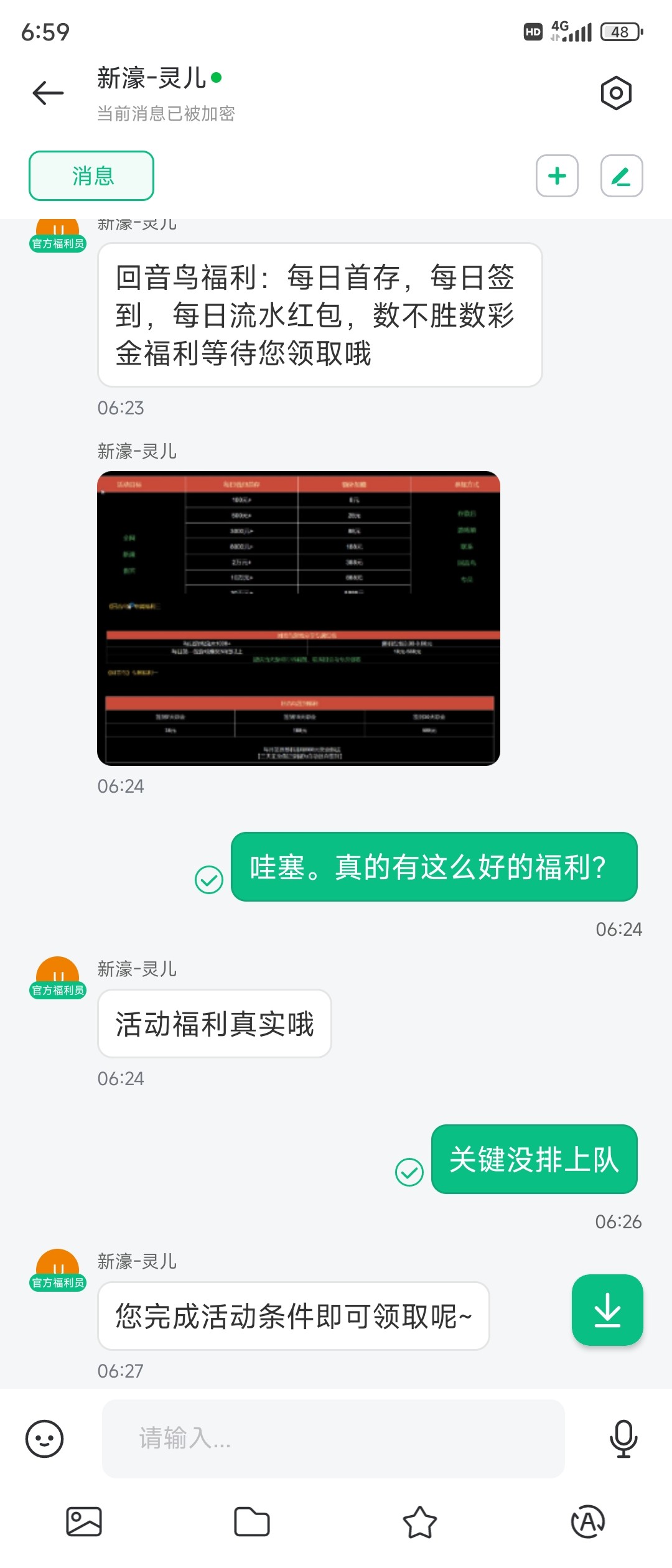 今天我来发帖,说说这个网站,其实我平时很少玩人民币台子,玩u台,但总有这些台子喜欢给我打电话说送彩金。平时基本我都不去。今天这个人跟我讲送588。我说那可以呀,我说要不要,存钱。他说不用,他说你注册过了之后直接找客服说领取回音鸟彩金(回音鸟毛彩金),然后就开始了下面的这些对话。其实你送不送彩金都无所谓,你给我打电话特邀,你不要玩那些文字游戏,是不是?特别有时候像有些兄弟们都输多了。感觉这都是一点希望的时候。当你跟他说这是你妈的存送,人家心里什么感受?送不起别送,狗日的新豪86613.cc