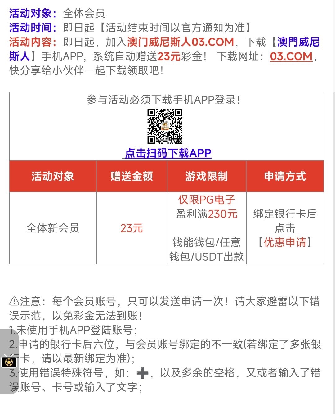 本站声明 1、本帖标题:【澳门03】— 注册送23