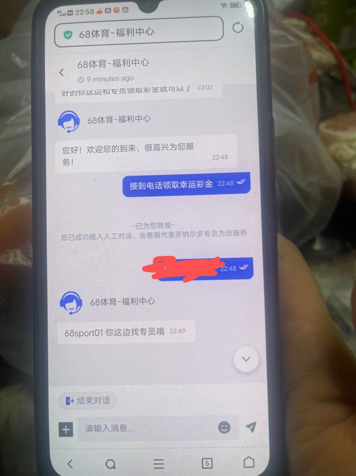 68体育前几天送了88,打完没充,今天又打电话送幸运彩金
