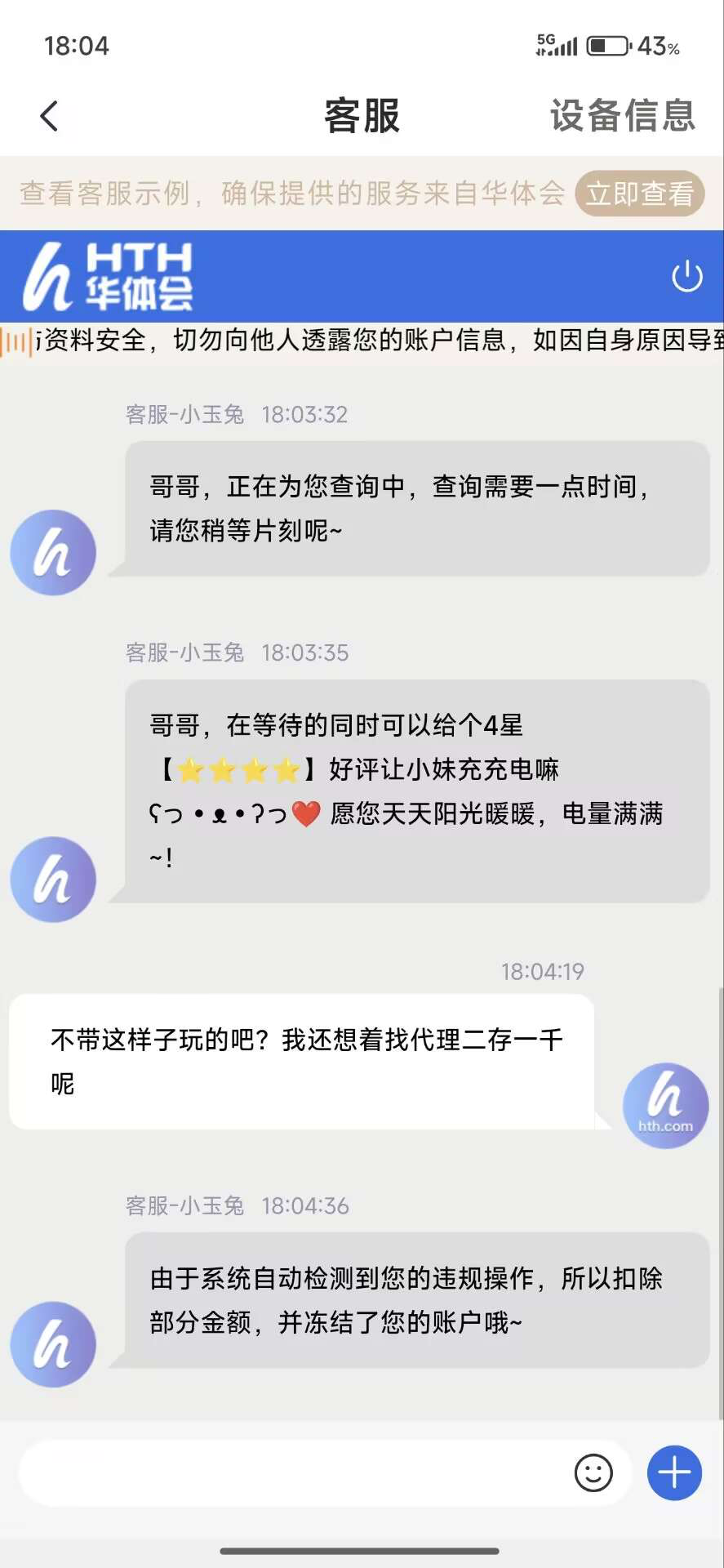 博系的体育平台真的是不能玩。狗吧接到狗带打电话过来说注册送100,进了QQ群加了软件好友,叫先注册,注册完说充值100才能领136。充了100米进去送了50,说分三天送。鸡巴进去拉pg一点水没有,大注不给分,磨了一个小时开了小注麻1爆了个差不多500倍。鸡巴一提现审核超10分钟我就知道有问题了,感染直接扣400给我退了本金。踢了本金直接封号了。这个几把死狗带也是,畜生中的畜生,抠门得要死。他妈的没钱就不要开代理线。前几天碰到的短信野鸡博系mc体育注册送108,一分没充都能提1000多,充100又提了1200。现在真的是野鸡比有点名气的平台还要有格局。