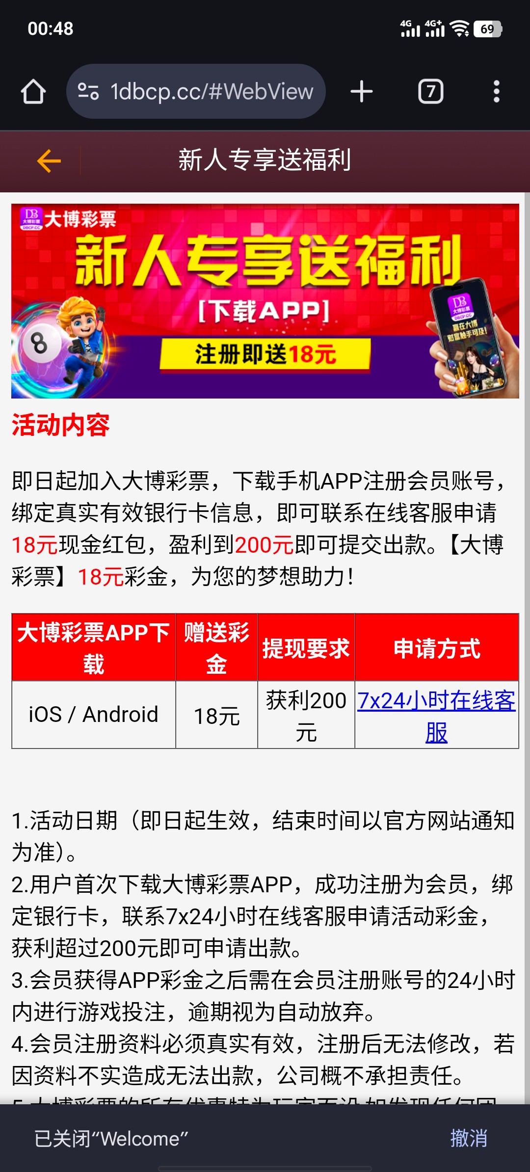 下载APP注册账号 完善信息自助申请18元彩金 满200出