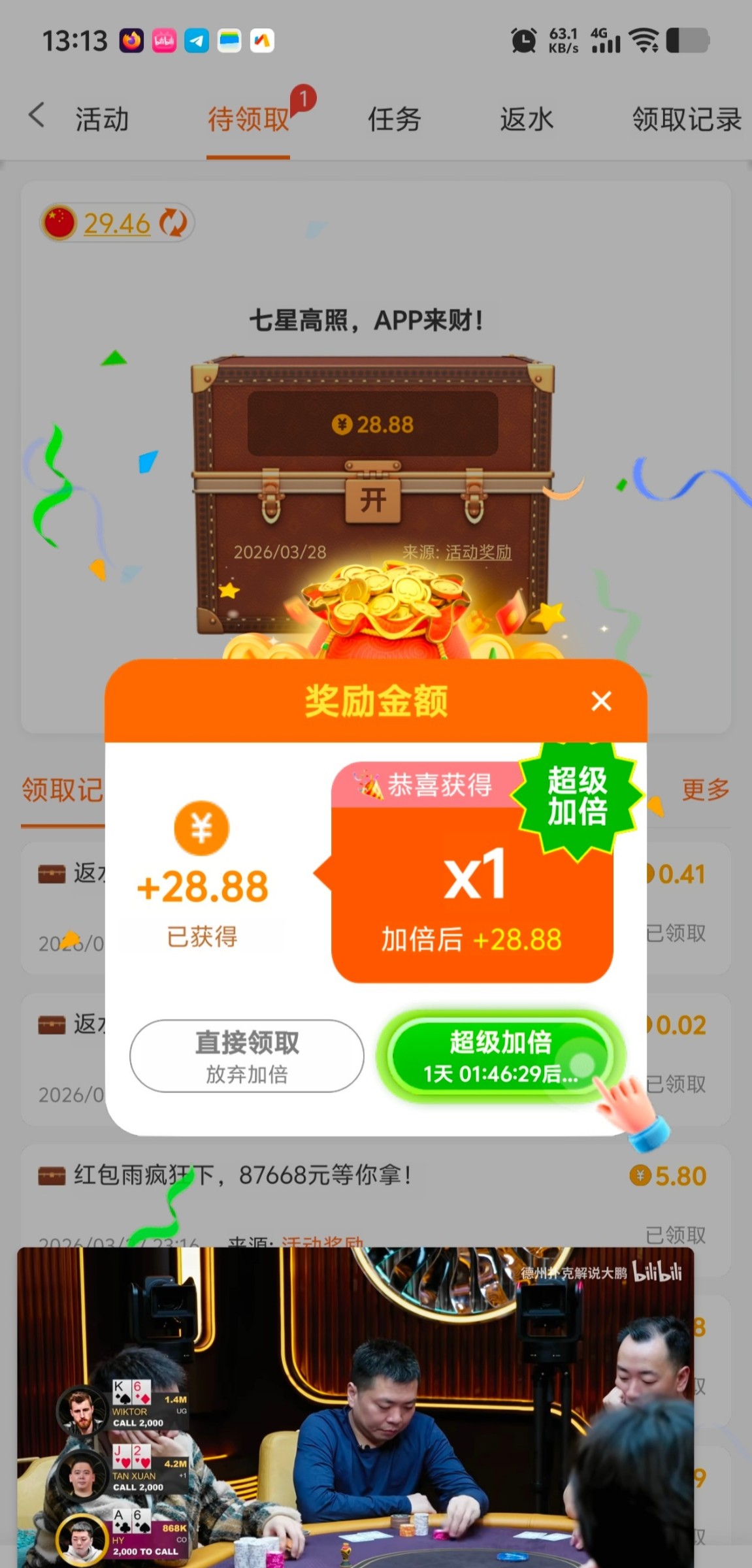 昨天app登录的可以领。充值领双倍