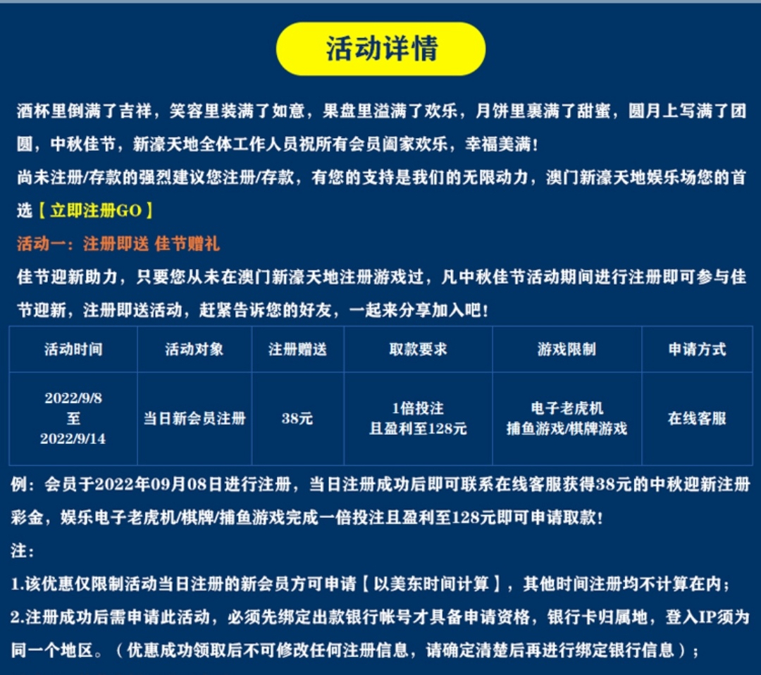 新用户注册绑卡找在线客服申请中秋注册彩金,送38具体限制自己问下客服