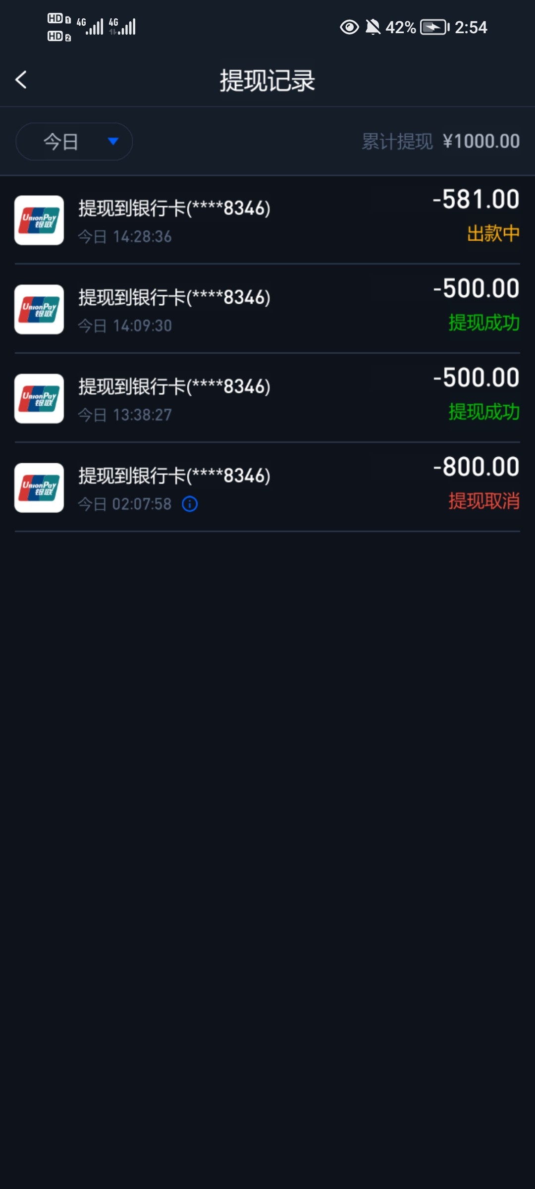 我也送两次,不知道啥原因,但是提款一个多小时没到账