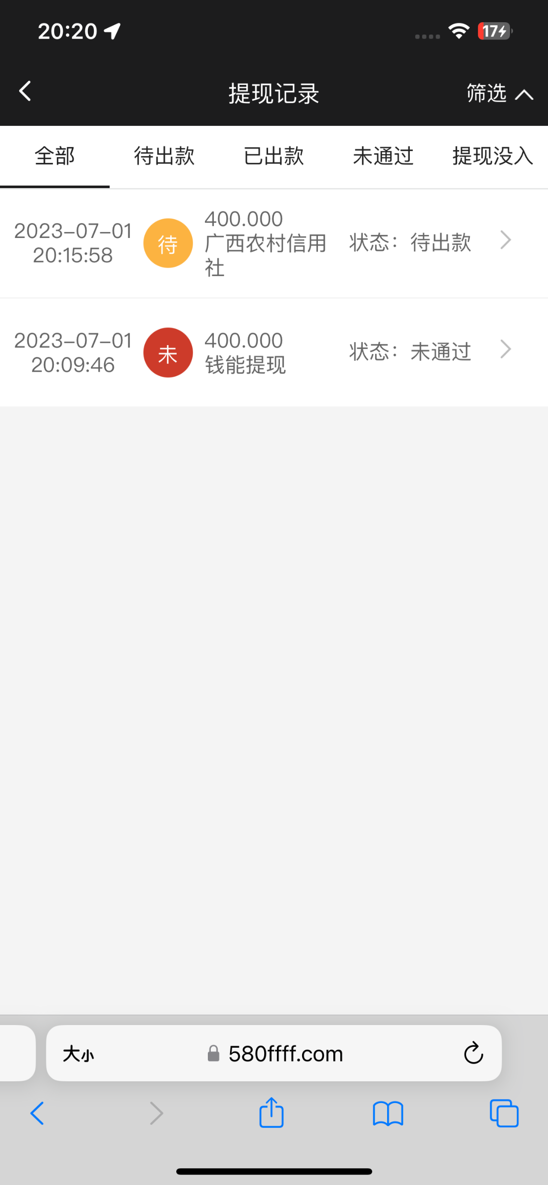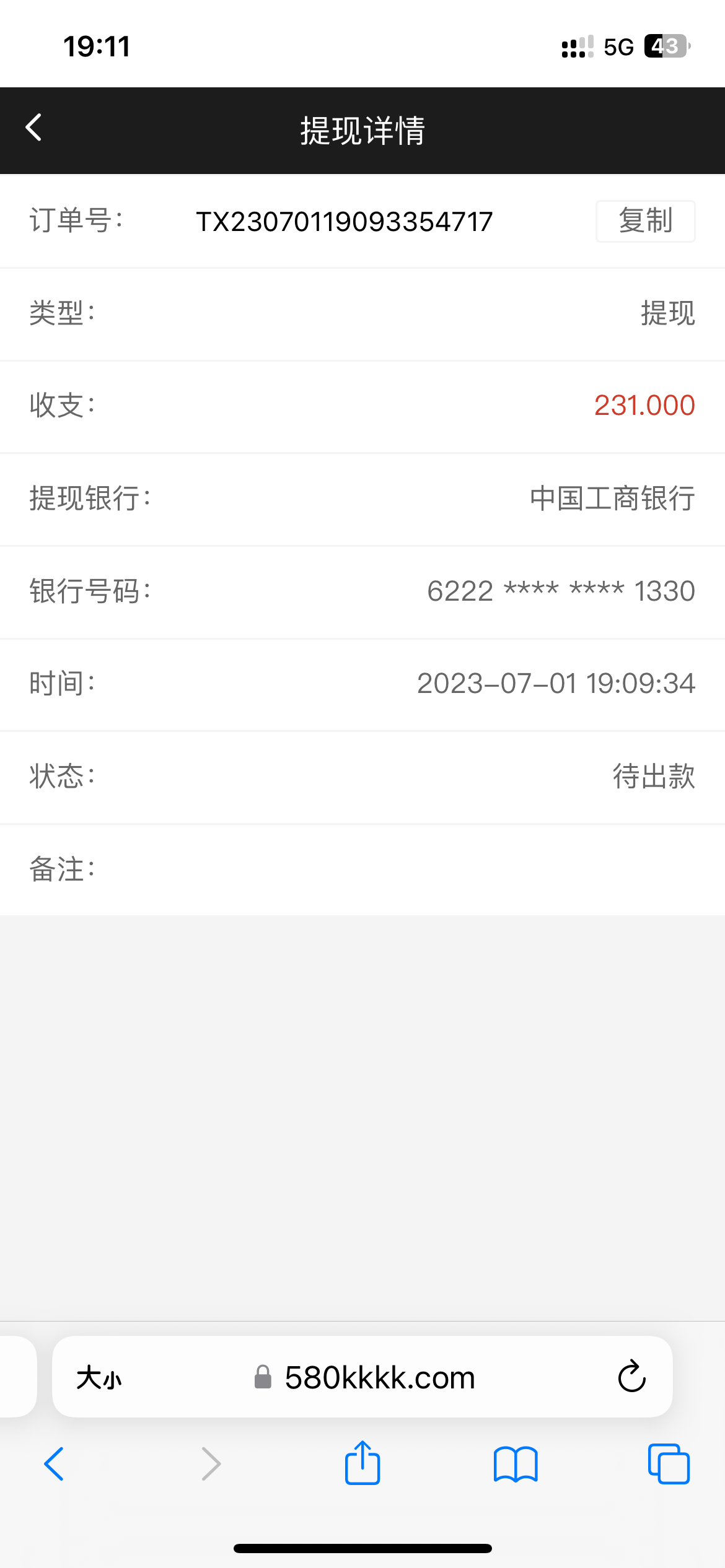 显示已出款,但是没到账